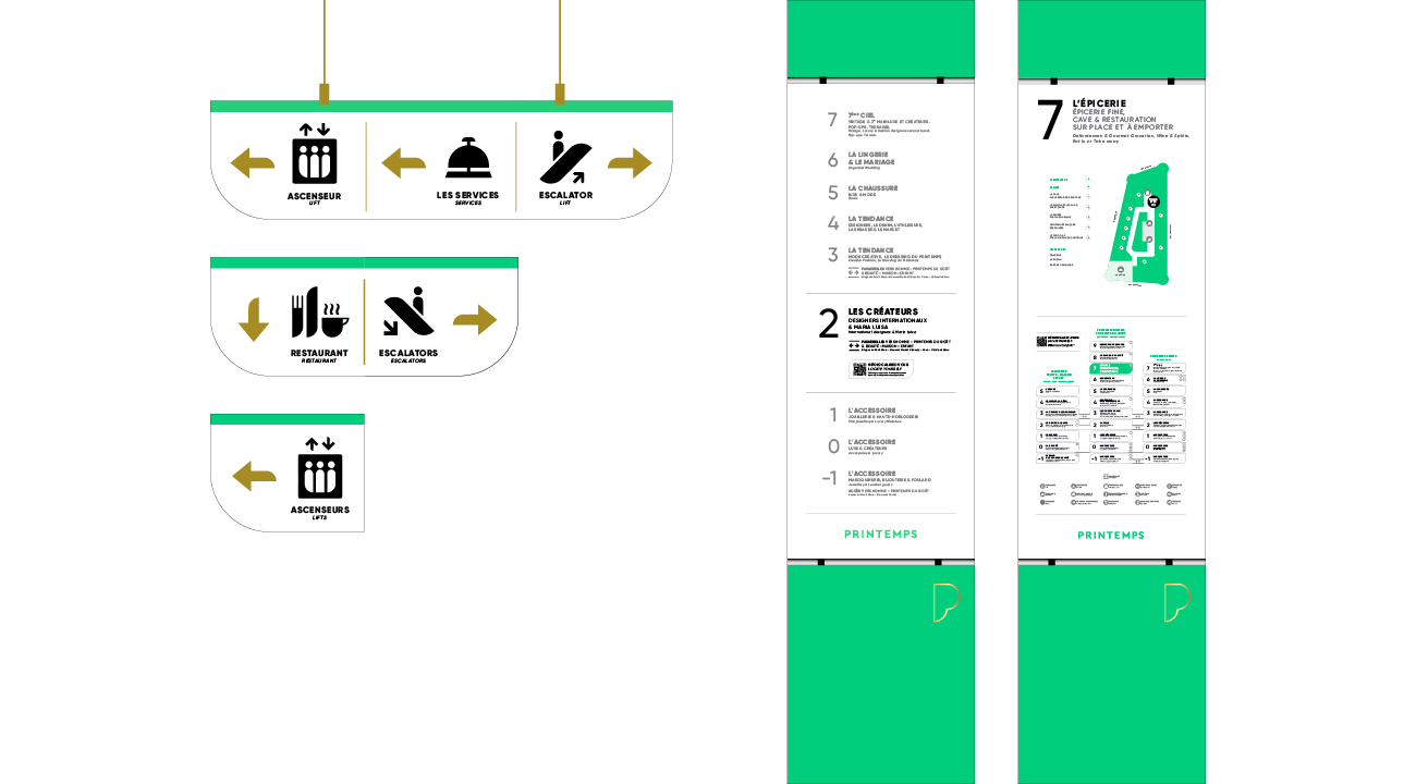Conception, réalisation, déclinaison graphique et déploiement de la signalétique des magasins du Printemps, Haussmann et chaîne..